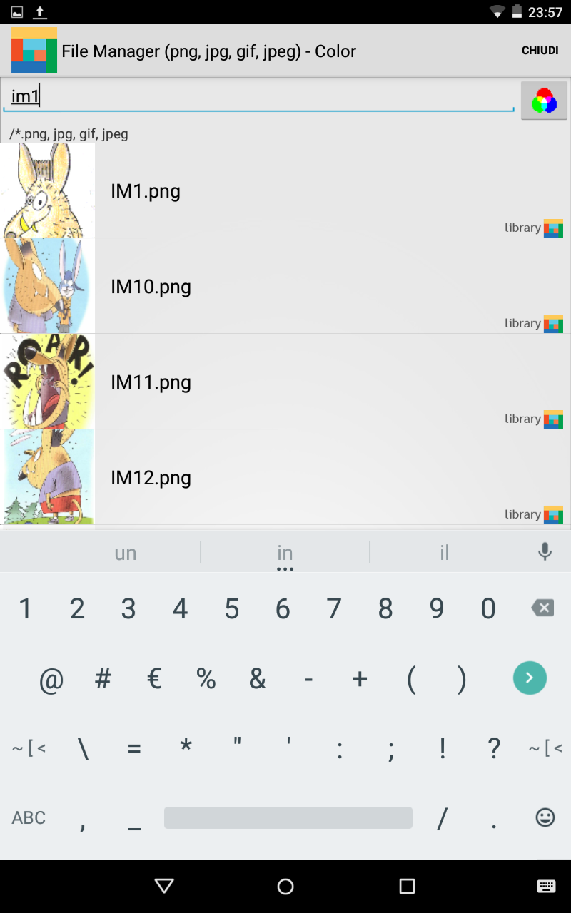 apro il file manager e già vedo come primo simbolo quello che voglio dato che il testo viene utilizzato come campo di ricerca